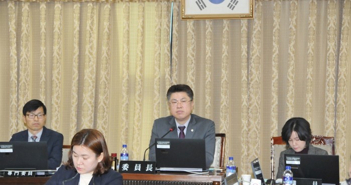 | ▲ 김연수 예결특위 부위원장(가운데)은 지난 4일 예산결산특별위원회 제2차 계수조정특위에서 심의하고 있다. |