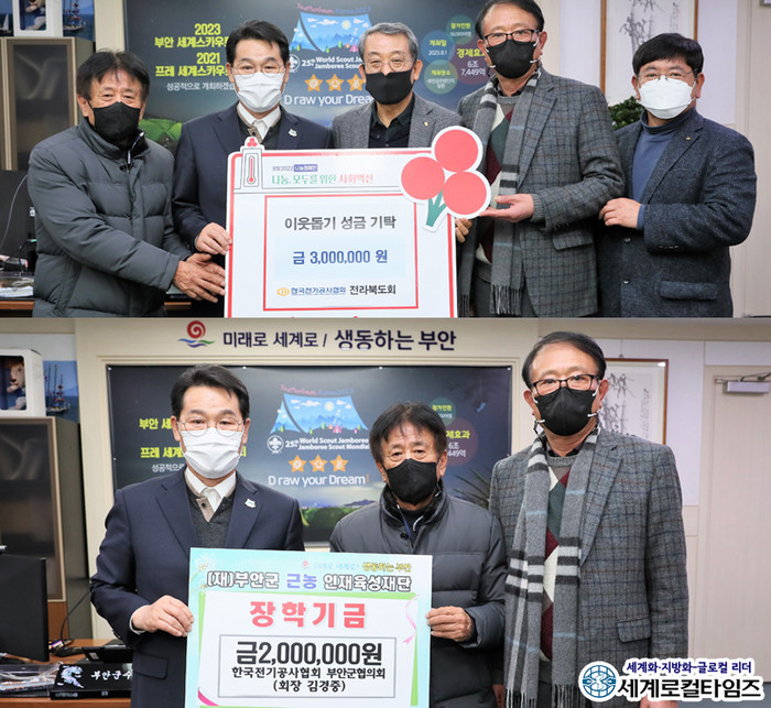 [세계로컬타임즈 조주연 기자] 한국전기공사협회 전북도회(이하 협회)가 부안군에 이웃돕기 성금 300만원을 기탁했다.