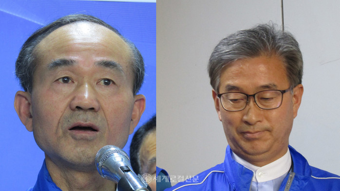 | ▲ 민주당 박준배(왼쪽) 김제시장 예비후보와 나인권(오른쪽) 도의원 예비후보. |