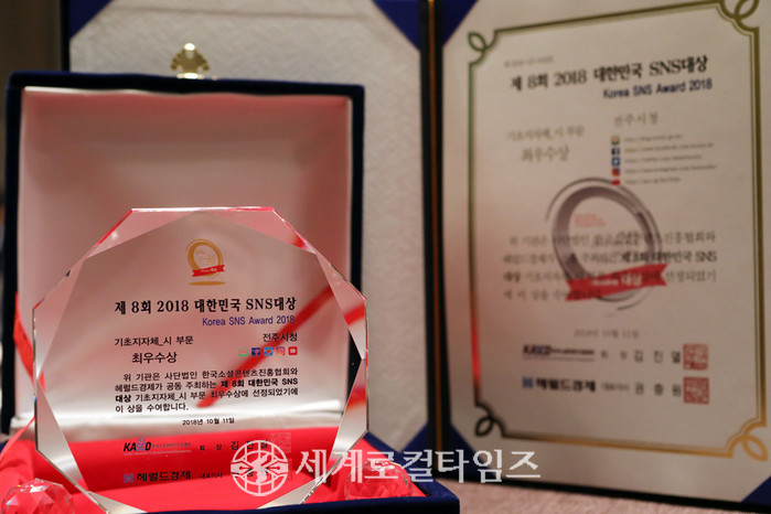 [세계로컬타임즈 조주연 기자] 전북 전주시는 '2018 대한민국 SNS 대상' 시상식에서 기초지자체 부문 최우수상을 수상했다.