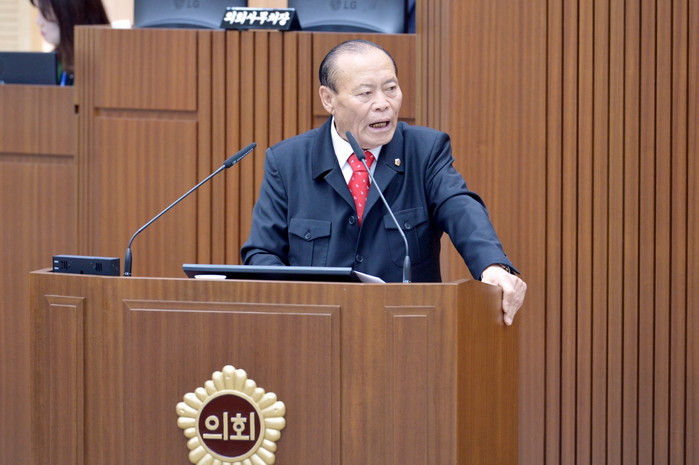 | ▲ 임상전 시의원이 14일 세종시의회 본회의장에서 시정질의를 하고 있다. <사진제공=세종시의회> |