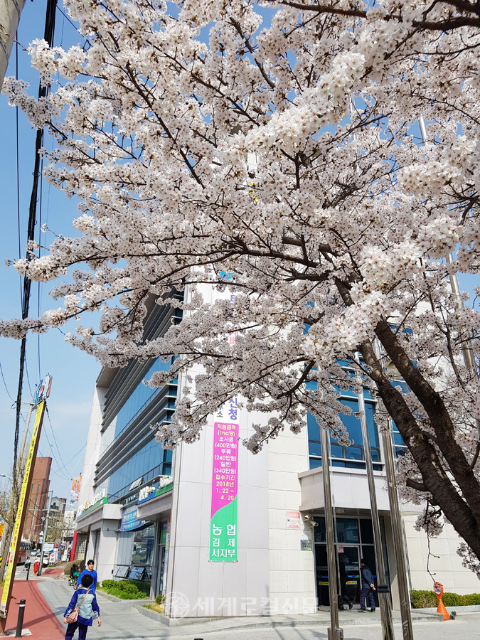 [세계로컬신문 조주연 기자] 3일 오전 전북 김제시 요촌동 대로변에 벚꽃이 만개해 지나가는 시민을 반기고 있다.