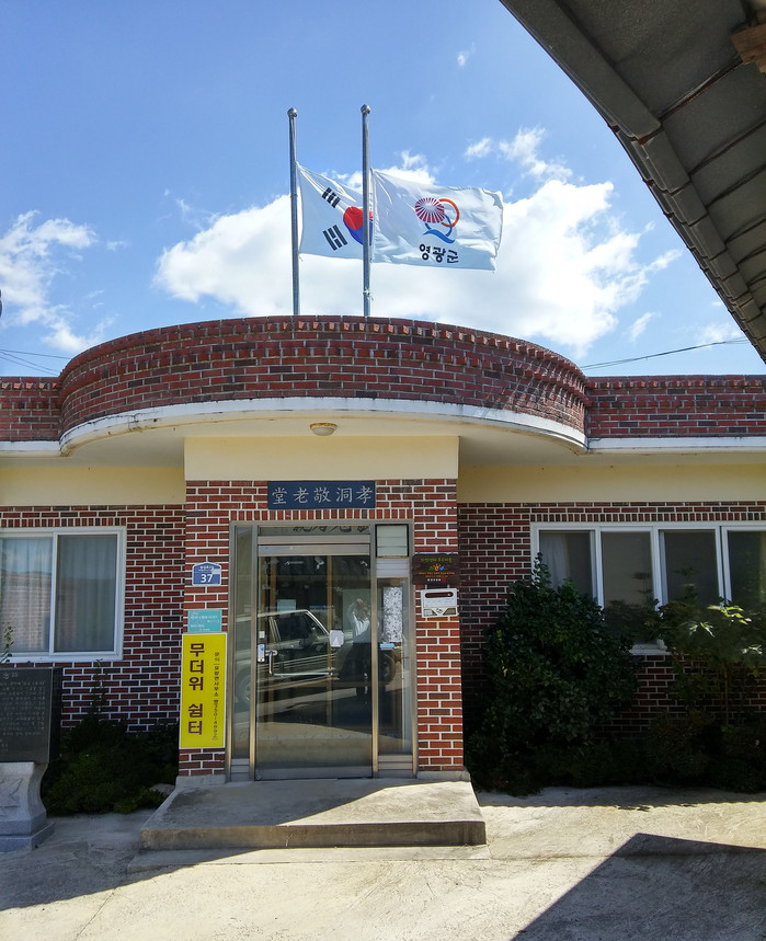 | ▲ 전남 영광군 묘량면 삼효리 효동부락 경로당에 8월 29일 조기가 게양된 모습. |