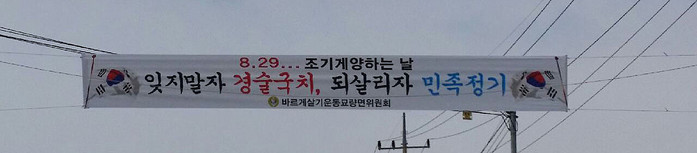 | ▲ 바르게살기운동 전남 영광군 묘량면위원회가 8월 29일 경술국치일을 맞아 조기게양을 알리는 현수막 모습. |