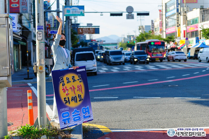 [세계로컬타임즈 조주연 기자] 대전광역시 대덕구의회 유승연(더불어민주당) 의원이 거리에서 추석 인사를 전했다. 유승연 의원은 9일 자신의 SNS에 “풍요로운 한가위 되세요”라고 적힌 피켓을 들고 교차로에서 인사하고 있는 자신의 사진을 게시했다.