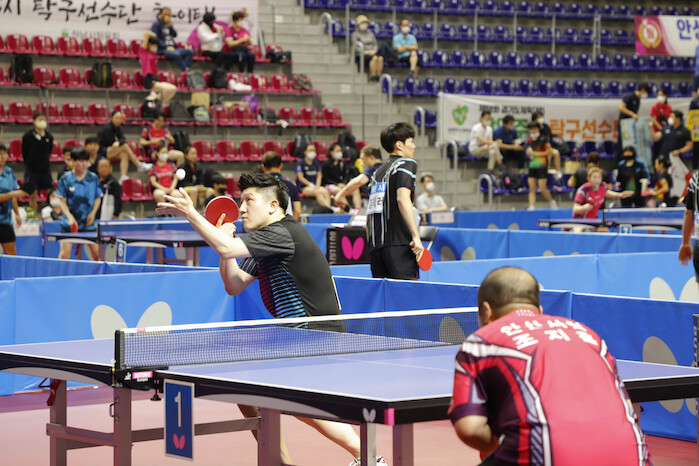 | ▲ 경기도체육대회 탁구 종목에서 김정훈 선수가 열전을 펼치고 있다. (사진=용인시) |