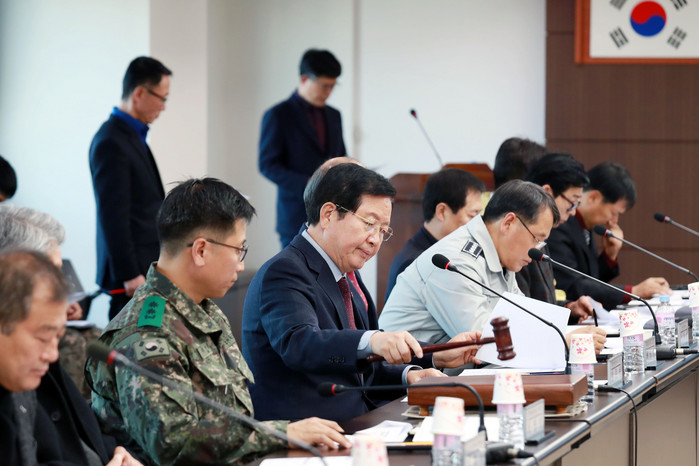 | ▲ 장종태 서구청장이 지난달 30일 통합방위협의회에서 회의를 진행하는 모습. |