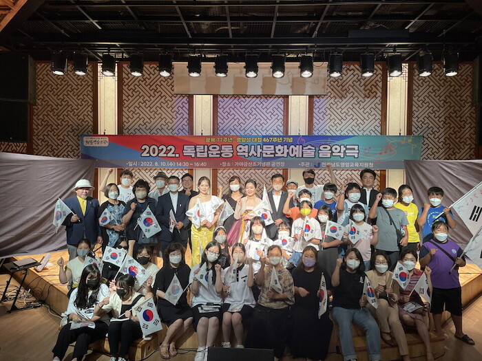 [세계로컬타임즈 강석운 기자] 영암교육지원청은 광복 77주년과 영암성 대첩 467주년을 기념해 10일 독립운동 역사문화예술 음악극 ‘얼’ 공연을 가야금산조기념관에서 개최했다.