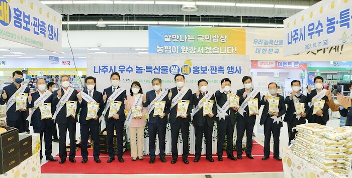 윤병태 나주시장은 “기름진 나주평야와 영산강의 풍부한 수량으로 길러낸 고품질 나주쌀과 친환경 농법의 고당도 나주배를 비롯한 나주의 우수 농특산물을 많이 애용해주시고 2천년 역사문화도시 나주도 방문해주길 바란다”라며 “앞으로도 국내·외를 가리지 않는 현장 중심의 농산물 판촉, 판로 확보에 발품을 아끼지 않겠다”라고 말했다.