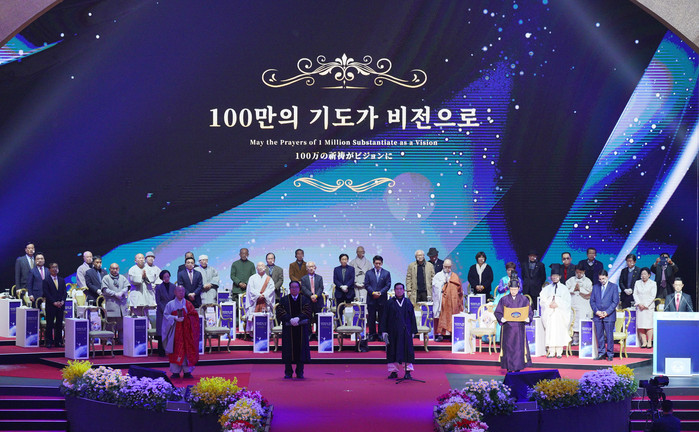 ‘100만의 기도가 비전으로’라는 주제로 열린 기도회는 국제적 참석자들을 위해 7개 언어로 동시통역해 진행됐으며, 이번 행사는 30년 전 문선명·한학자 총재가 방북하여 김일성 주석과 회담한 기간에 개최됐다.