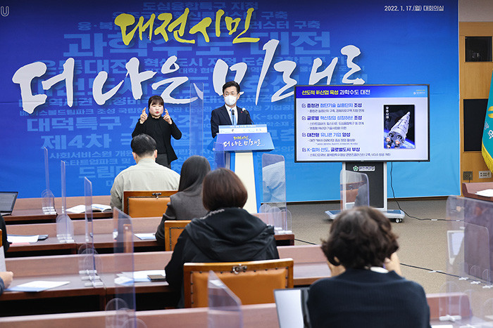 시는 올해 시정방향을 그간 지속된 코로나19 위기를 이겨내고 미래로 도약하는 패러다임 대전환의 원년으로 정하고, ▲선도적 신산업 육성 ▲대전중심의 국가균형발전 견인 ▲시민이 주인이 되는 자치분권 실현 등 크게 3가지 분야에 역점을 두고 추진하겠다고 밝혔다.