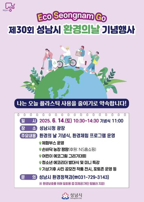 세계로컬타임즈 - 성남시, 환경의 날 기념행사 14일 시청 곳곳서 개최