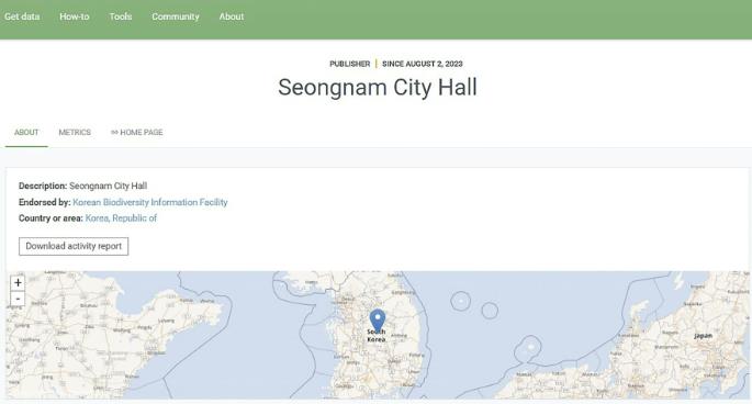 데이터 등록 절차는 체계적으로 운영되고 있다. 시민들이 ‘성남시 자연자원 플랫폼’을 통해 모니터링 기록을 입력하면, 국립생태원 등 관계 기관 소속 전문가들이 학명의 정확성, 사진 자료를 통한 종 확인 등 자료 검증 과정을 거쳐 최종적으로 GBIF에 등록한다.