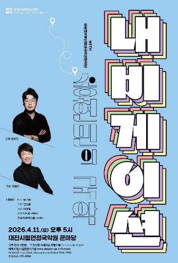 또한 대전 출신 소리꾼 이선명이 무대에 올라 전통 창법을 기반으로 ‘풍류대장’, ‘불후의 명곡’ 등에서 보여준 국악과 현대음악을 결합한 다양한 레퍼토리를 선보이며 관객들에게 신명난 우리 가락을 선사할 예정이다.