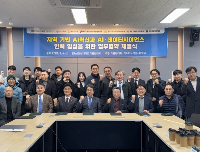 6일 전남대학교에 따르면, AI융합대학은 2월 4일 교내 AI융합대학에서 나명환 학장 취임식과 함께 지역 기반 AI 혁신 촉진 및 AI·데이터사이언스 생태계 조성을 위한 업무협약(MOU) 체결식을 개최했다.