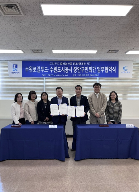 양 기관은 8일 장안구민회관에서 업무협약을 체결하고 ▲직거래장터 운영 협력 ▲농산물 판매·판로 확대 ▲소비 촉진 행사 등을 추진하기로 했다.