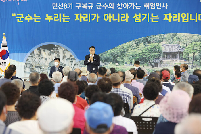 구복규 화순군수가 취임 후 공식적으로 방문하지 못한 7개 면 지역 주민들을 직접 찾아가 취임 인사를 하며 민선 8기 군정 운영 포부를 밝혔다.