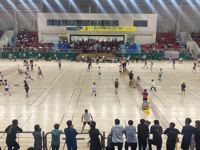 | ▲ 하니움문화스포츠센터 실내체육관에서 배드민턴대회 경기를 하는 모습.(사진=화순군) |