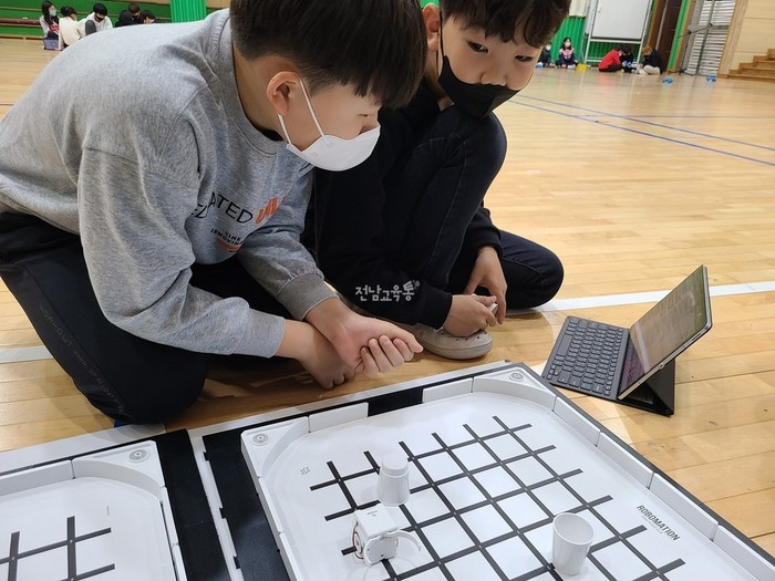 또한 동아리 학생들이 중심이 돼 직접 부스(소마큐브, 컵을 옮기는 로봇, 그림 그리는 로봇, 로봇 축구, 코딩드론, 스피로 코딩)를 운영해 전교생이 조별(무학년제)로 체험할 수 있는 기회를 가졌다.