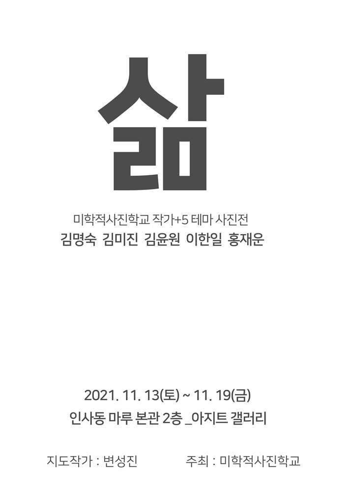 한편 이번 ‘미학적 사진 학교 작가+5 테마사진전’의 지도작가로 참여한 변성진 작가는 “지도작가 성향에 따라 전시 성격과 참여작가들의 사진 스타일이 영향을 받는 대다수의 전시와는 달리 참여작가 개개인의 특성이 잘 묻어나는 전시를 만들고 싶었다”며 “‘사람, 삶’이라는 하나의 주제를 다양한 사진 장르로 결과물을 만들어내는 것이 목표”라고 말했다.
