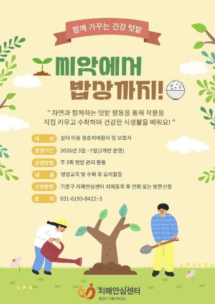 센터 관계자는 “텃밭 활동은 심리적 안정과 정서적 만족감을 높이고, 신체 활동과 인지 자극에도 도움을 줄 수 있다”며 “관심 있는 분들의 많은 신청을 바란다”고 말했다.