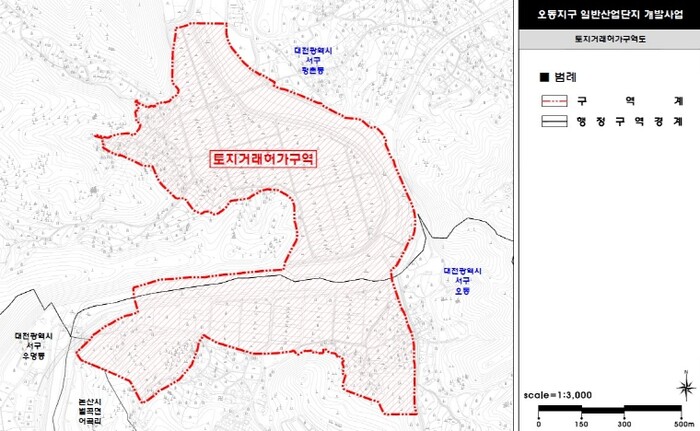 [세계로컬타임즈] 대전시는 24일부터 대전 서구 ‘오동지구 일반산업단지’와 ‘봉곡지구 일반산업단지’ 2곳의 사업구역 1.16㎢에 대하여 3년간 토지거래허가구역으로 지정한다.