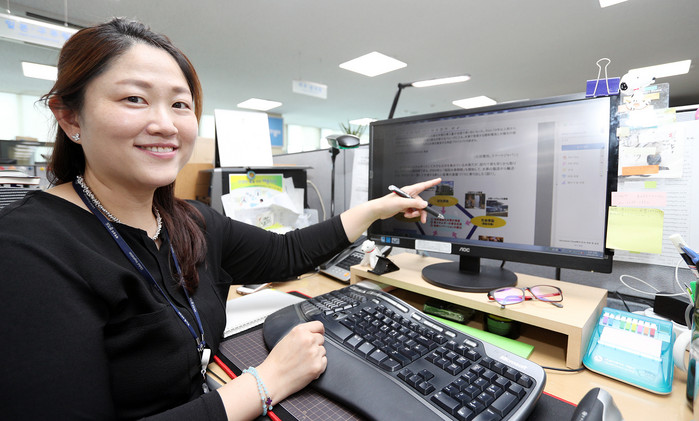 | ▲ 경기도 투자진흥과 유진 주무관이 자신의 컴퓨터를 가리키며 일본 투자유치 성공에 대한 설명을 하고 있다.<사진제공=경기도청> |