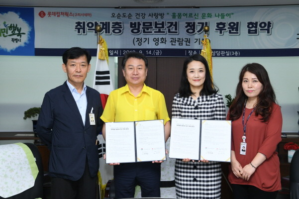 경기도 구리시는 구리시네마(구리아울렛관)와 취약 계층 독거노인들을 위한 영화 관람권 정기 후원 협약을 체결했다.