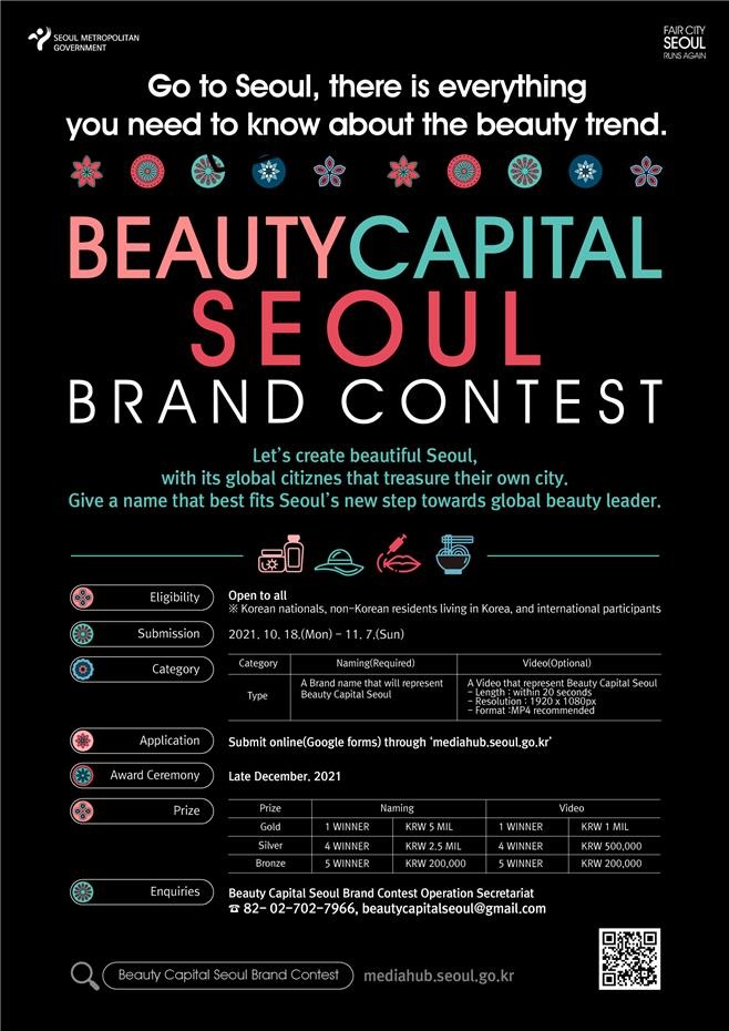 18일 서울시에 따르면 서울시는 ‘세계의 뷰티 트렌드를 주도하고 세계 뷰티산업의 중심도시로 도약하는 서울’이란 주제로, ‘뷰티도시 서울’의 브랜드 이름(네이밍)과 영상 공모전을 이날부터 11월 7일까지 개최한다.