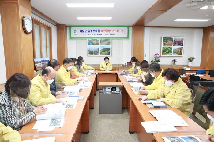 17일 화순군은 박철원 부군수 주재로 보고회를 열고 20개 공공건축물 추진상황을 점검했다. 추진 부서 관계자 20여 명이 참석한 가운데 열린 보고회에서 추진현황과 향후 계획, 추진 애로 사항을 공유하고 대책 마련에 머리를 맞댔다.