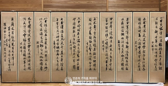 | ▲일제강점기 민족시인 이상화가 당시 대구의 대표적인 서예가·수묵화가인 서동균에 부탁해 민족지사 김정규에게 선물한 '금강산 구곡담 시'를 담은 10폭 병풍. (사진=대구시 제공) |