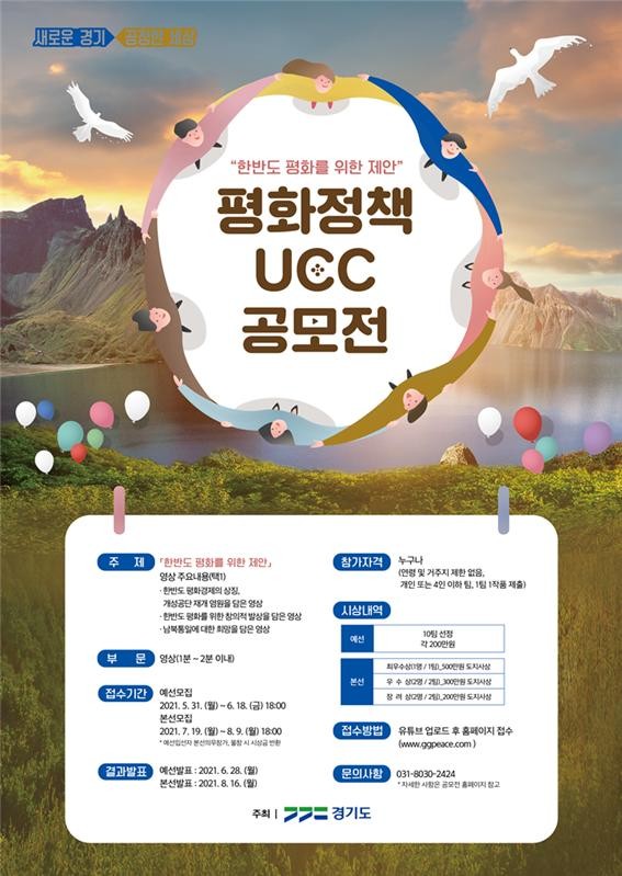 [세계로컬타임즈 이호 기자] 경기도는 ‘한반도 평화를 위한 제안’을 주제로 ‘제2회 평화정책 UCC 공모전’을 개최한다.