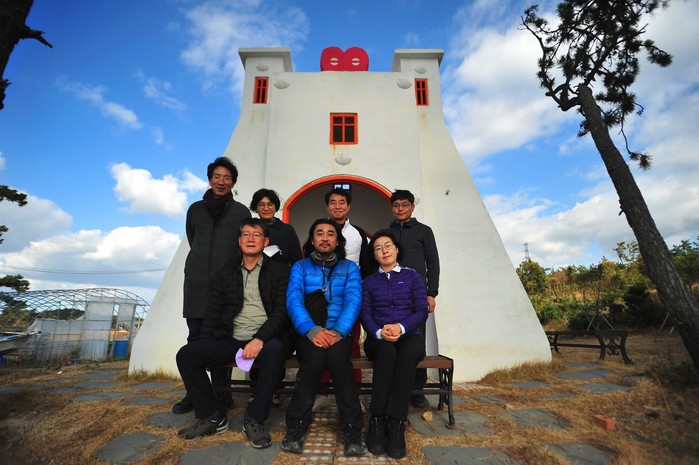 | ▲기점소악도를 찾은 관광객들은 예배당 앞에서 사진을 찍다 작가들이 방문하자 깜짝 놀라며 유명 연예인을 만난 듯 박수치고 환호하며 사진찍기에 바빴다. 작가들도 이 정도로 환영받을 줄 몰랐다며 감격해했다.(사진=신안군) |