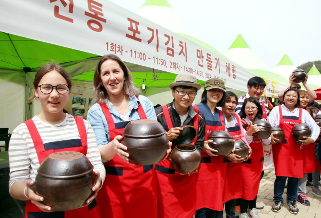 | ▲ 지난해 5월8일 울산옹기축제를 방문한 글로벌 다문화 가족들이 직접 담은 김치를 옹기에 넣고 기념촬영하고 있다.<사진제공=울산시청> |