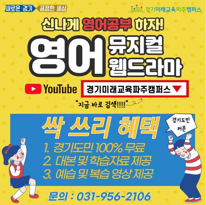 경기미래교육파주캠퍼스는 온라인 교육 콘텐츠로 제작한 영어 뮤지컬·웹드라마를 지난 3월부터 유튜브 채널에 차례대로 게시 중이다.