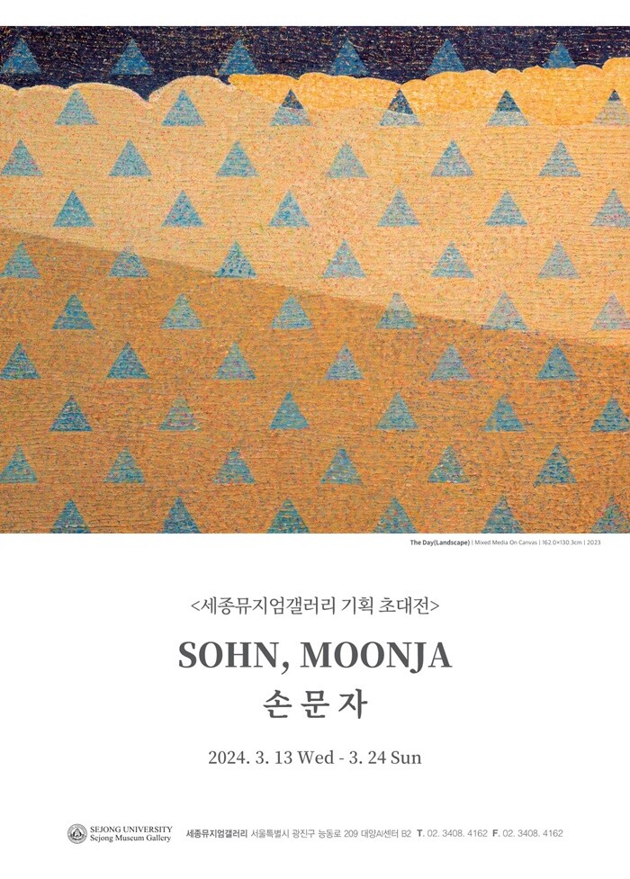 [세계로컬타임즈 김영식 기자] 세종대학교 세종뮤지엄갤러리는 평면적이면서도 분할된 순수한 도형들과의 조합으로, 마치 정교하게 직조된 타피스트리를 보는 것과 같은 감각으로 표현하는 손문자 작가의 작품을 선보인다고 12일 밝혔다.