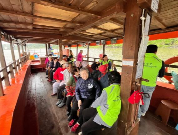 이날 지역사회보장협의체 위원 8명이 행사에 참여해, 어르신들의 이동을 돕고 말벗 활동을 수행하며 프로그램의 진행을 지원했다. 어르신들은 적성면 두지리 나루터에서 황포돛배에 탑승해 거북바위, 임진강적벽 등에 대한 설명을 듣고, 중간중간 사진을 찍으며 풍경을 만끽했다.