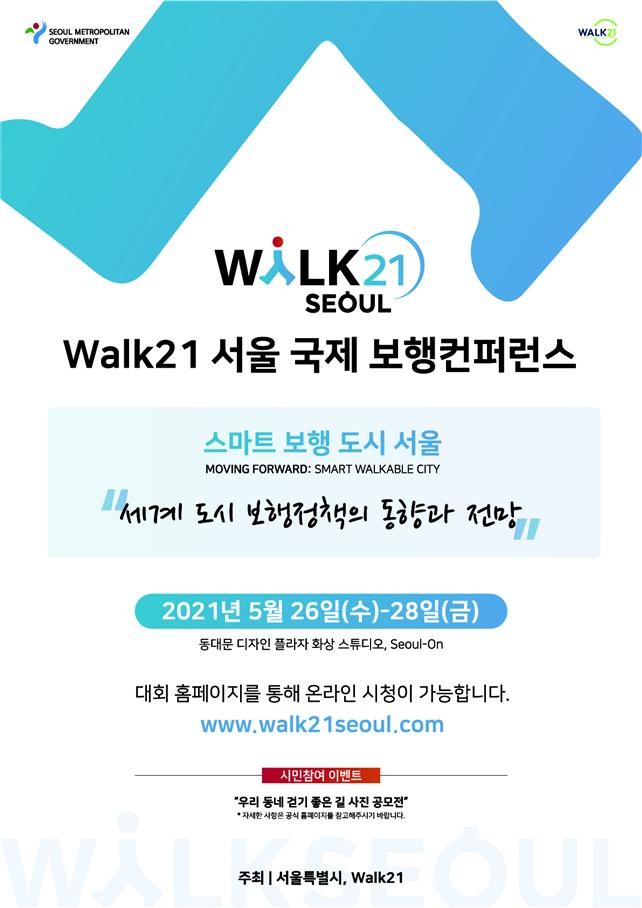 2000년 영국에서 최초 Walk21 대회 이후, 뉴욕, 뮌헨, 홍콩, 로테르담에서 등에서 개최됐고, 서울대회는 21회로 당초 2020년 9월 23~25일 예정이었으나 코로나19 확산으로 올해 5월로 개최를 연기하고, 최초로 온라인 형식으로 진행한다.