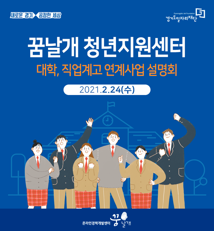 올해는 연계 규모를 확대하기 위해 경기도일자리재단이 24일 전국 대학교와 직업계 고등학교 취업지원 자를 대상으로 ‘꿈날개 청년지원센터 연계 학교 모집’ 온라인 설명회를 연다.