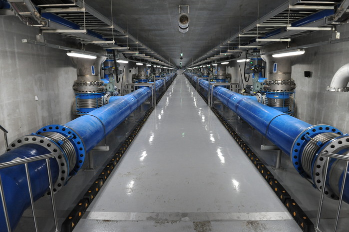 | ▲ 암사아리수정수센터의 고도정수처리시설 내 송수관 모습. |