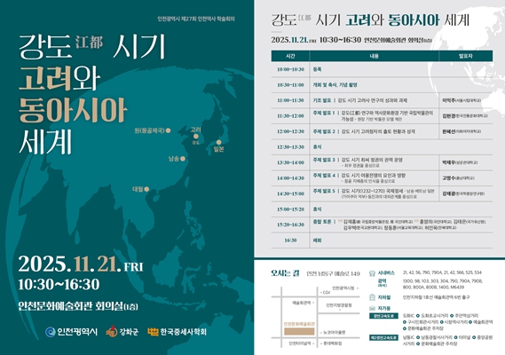 [세계로컬타임즈] 인천광역시는 제27회 인천역사 학술회의 ‘강도 시기 고려와 동아시아 세계’를 오는 11월 21일 인천문화예술회관에서 개최한다고 밝혔다.