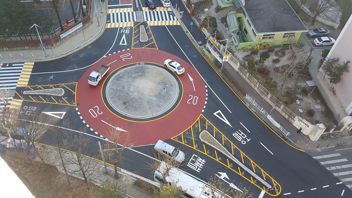 이에 따라 시는 도로교통공단 및 한국교통연구원과 협업해 회전교차로 설치에 따른 타당성을 검토하고 원형교통섬 및 고원식 횡단보도 설치 등 시설 정비공사를 완료했다.
