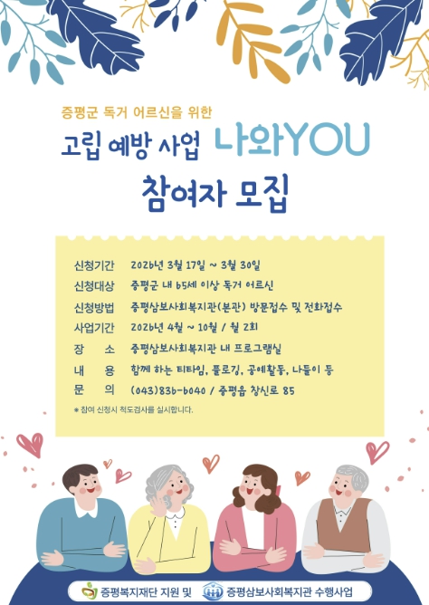 이와 함께 나들이와 심리 건강 프로그램도 병행해 정서적 안정과 활력 회복을 지원할 예정이다.