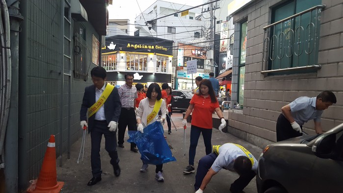 이날 캠페인에서 참가자들은 주변 상가에 올바른 쓰레기 배출요령 홍보와 담배꽁초를 비롯한 각종 쓰레기를 수거했다.