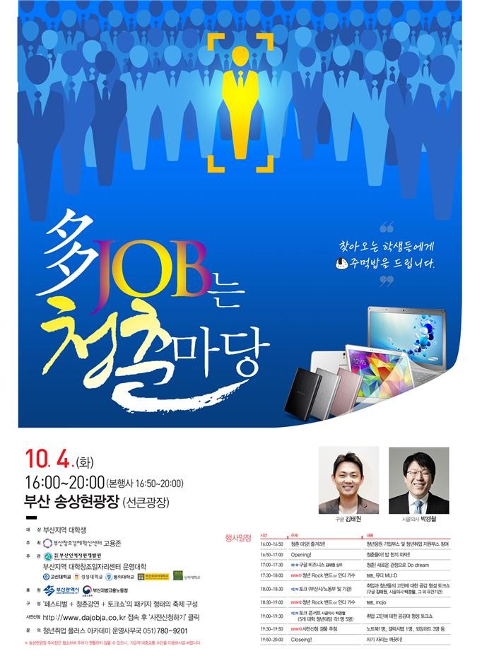 ▲ 부산시가 10월4일 개최하는 '多JOB는 청춘마당' 포스터.<사 진제공=부산시청> |