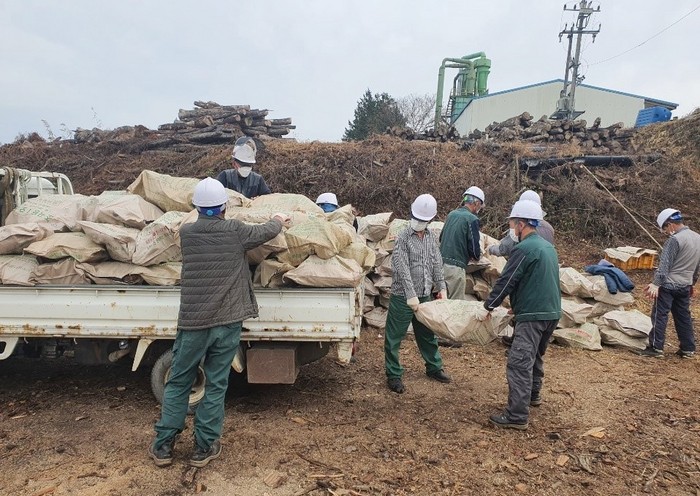 땔감 나눔은 매년 숲 가꾸기 사업을 통해 벌채된 이용가치 없는 목재를 산림바이오매스수집단이 적당 크기의 땔감으로 만들어 취약계층에 지원하는 사업이다.