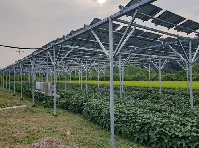‘영농형 태양광’은 농지 위에서는 태양광 발전을 통해 전력을 생산하고, 아래에서는 기존대로 농작물을 재배하는 방식으로, 농지의 효율적 활용을 통한 농가 소득 증대 대안으로 주목받고 있다.