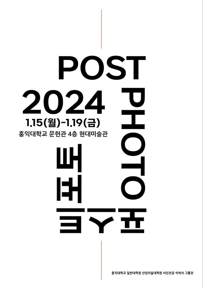 [세계로컬타임즈 김영식 기자] 올해 20주년을 맞이하는 ‘포스트 포토 2024 (Post Photo 2024)’가 15일부터 19일까지 홍익대학교 문헌관 4층 현대미술관에서 개최된다.