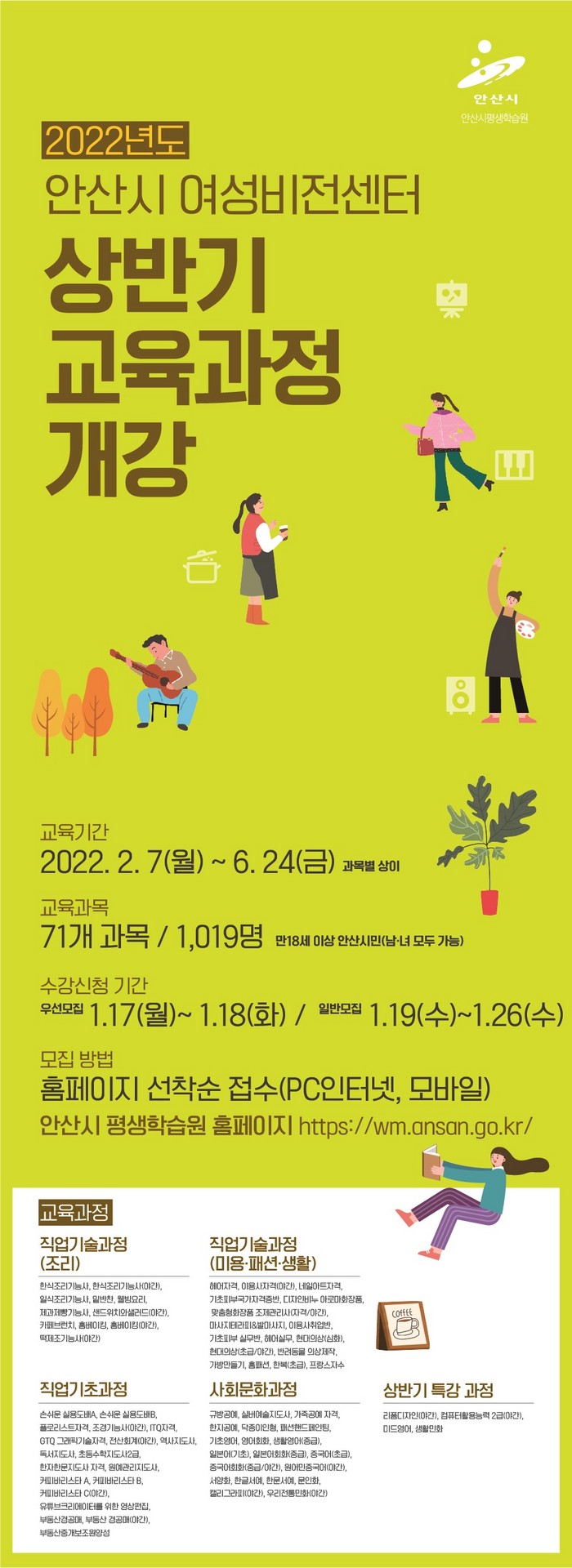 수강신청에 필요한 자세한 사항은 안산시 여성비전센터 홈페이지를 참조하거나, 여성비전센터로 문의하면 자세한 안내를 받을 수 있다.