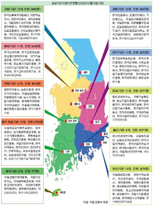 | ▲ 공공기관 지방이전 현황(2015년 12월31일 기준) |